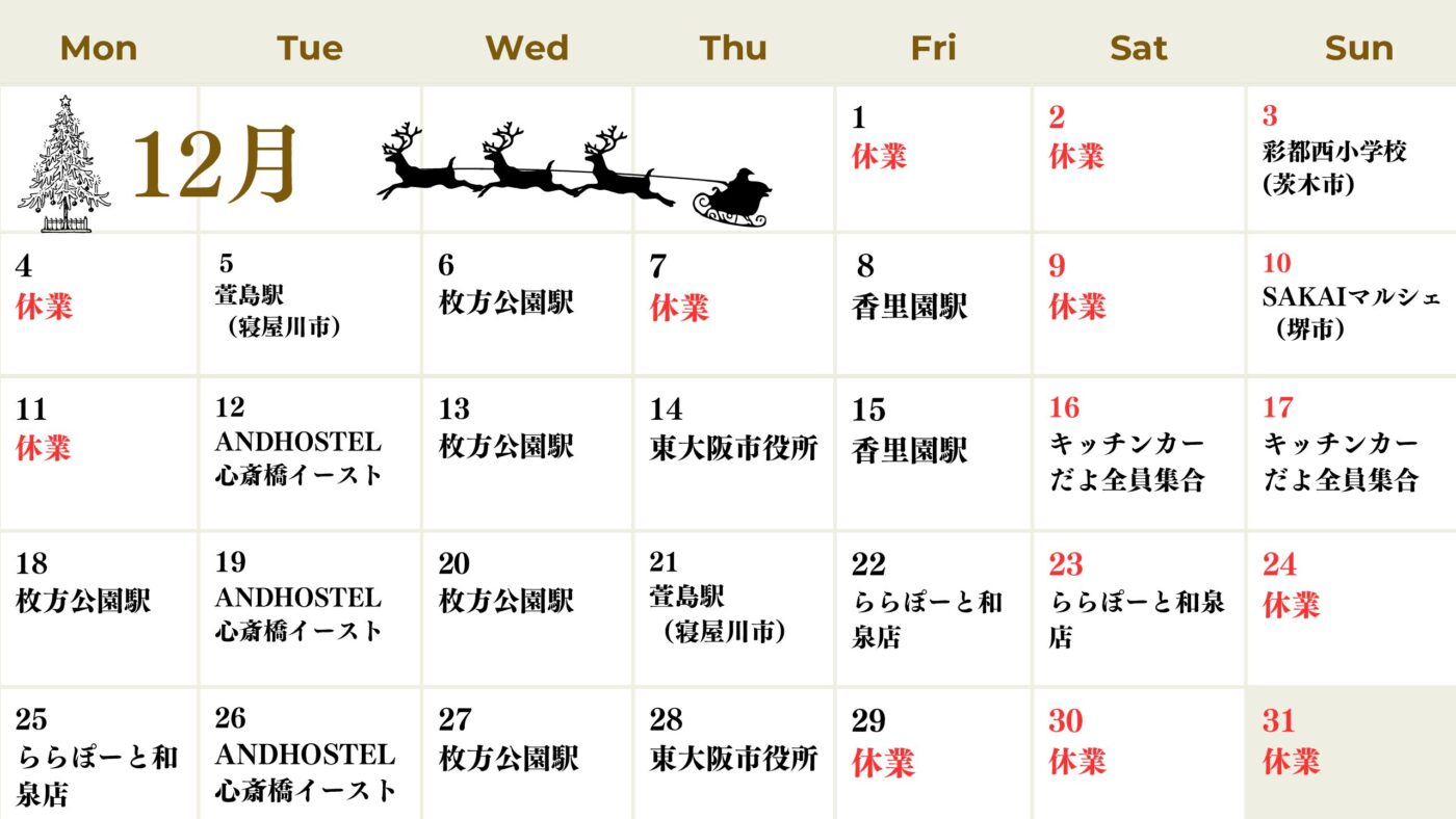 On December 22nd, 23rd, and 25th, we will be opening a store at LaLaport Izumi store from 10:00 to 20:00 on weekdays and 10:00 to 21:00 on Saturdays, Sundays, and holidays!