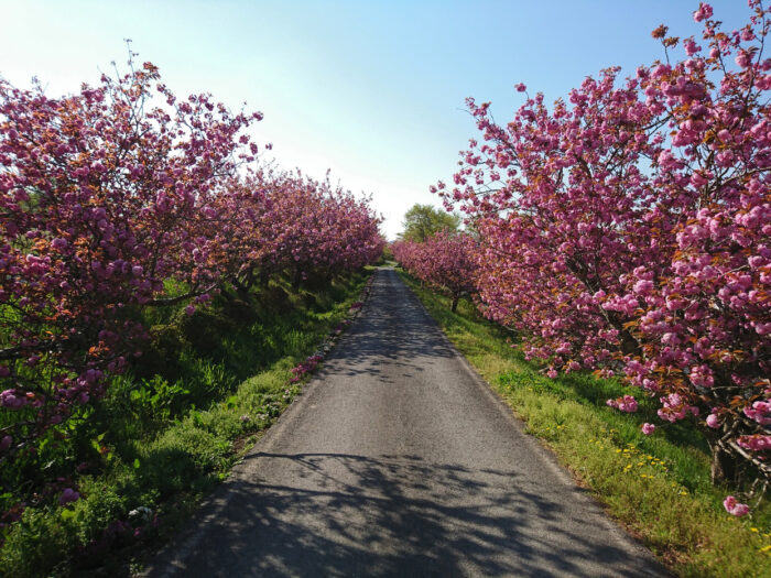 | 八重桜の並木道 |
