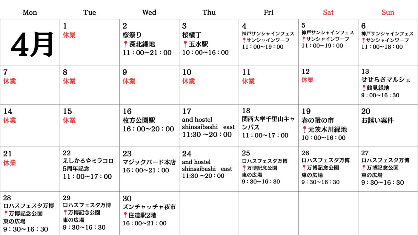 今月も始めていく出店場所がたくさん!沢山のお客様、キッチンカーの皆様とお話しできますように✨