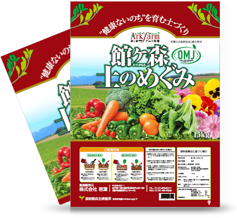 自然由来の原料を用いた肥料である証明として「館ヶ森 土のめぐみ」は認定機関により「有機JAS適合資材」の認証証明を取得しております。